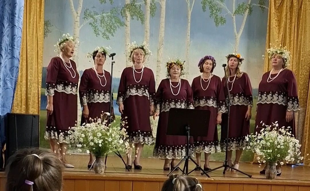 В программе мероприятия прозвучали песни о деревне, о любви в исполнении ансамбля " Селяночки" : Денисовой В. Н., Ереминой Е. В., Лешиной М. А., Николаевой Т. И., Гусевой Е. А., Николаевой О. С., Моховой Н. В. ; стихи в исполнении Николаевой О. С., частушки, в исполнении самой юной участницы нашего праздника Николаевой Таси. Гость нашей программы Назаров Евгений порадовал зрителей песнями о деревне, о Родине. Участники художественной самодеятельности разыграли юмористическую сценку " Три девицы ".