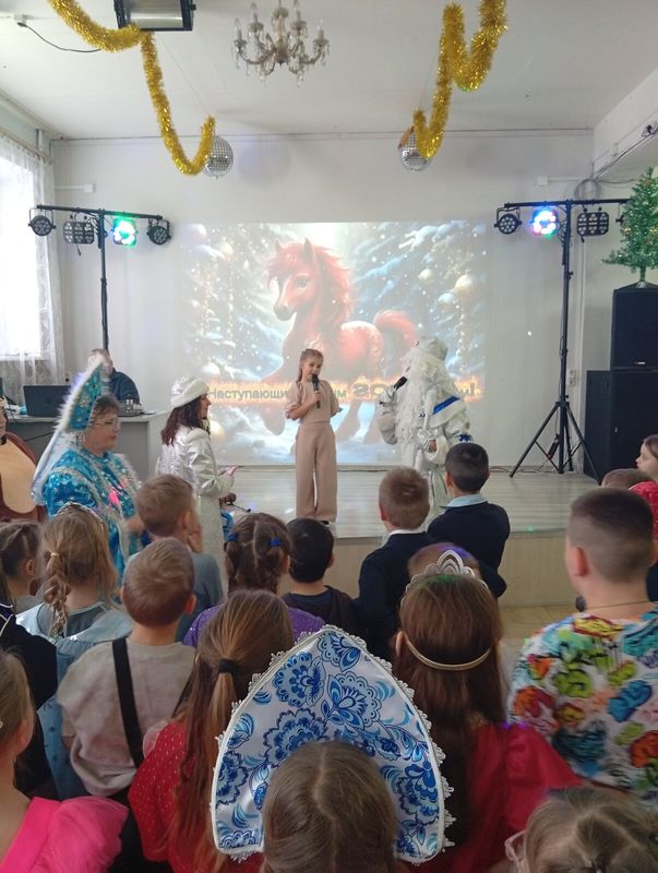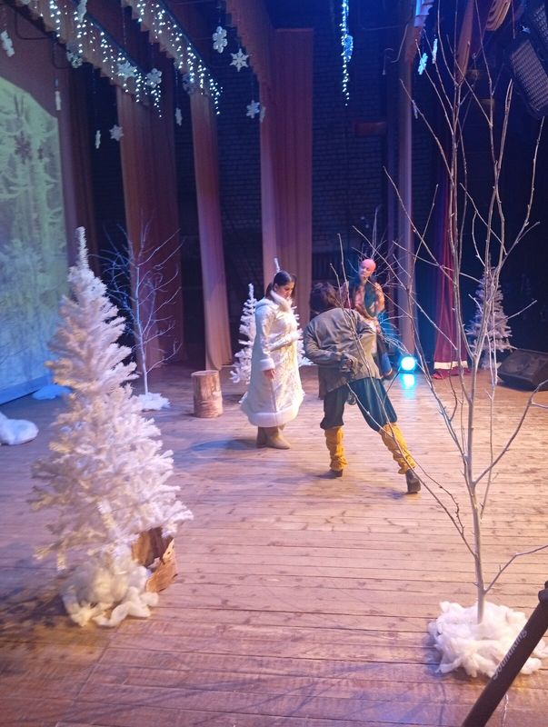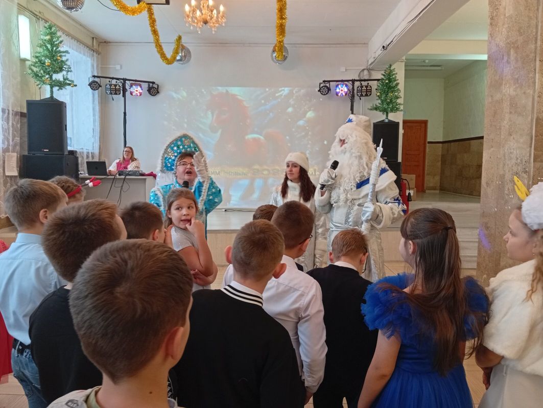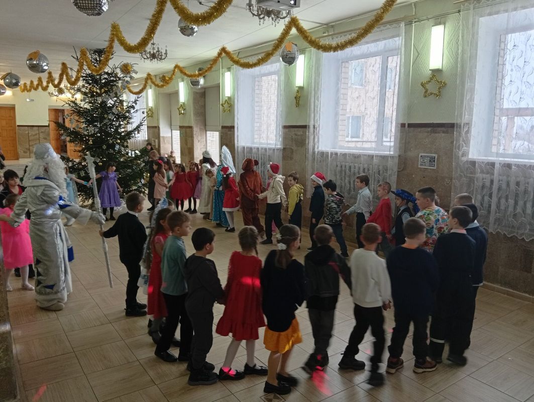 На сцене концертного зала была показана театрализованная программа «Украли Снегурочку». Продолжился праздник у новогодней ёлки, где дети веселились, пели, танцевали, принимали активное участие в играх, водили хороводы.